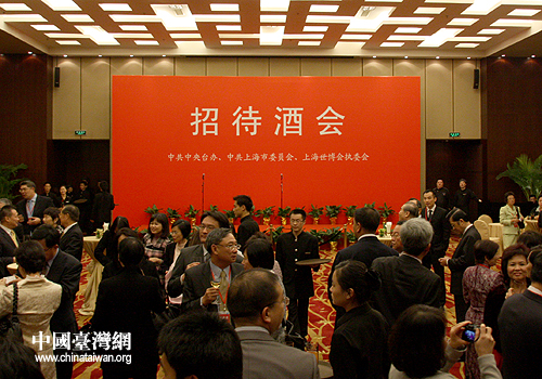 29日晚,中共中央台办、中共上海市委及上海世博会执委会在上海举行酒会,招待出席上海世博会开幕式活动的台湾嘉宾。(中国台湾网 张弛 摄)