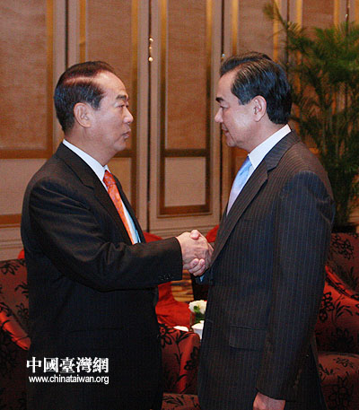4月30日中午,中共中央台办、国务院台办主任王毅在上海会见亲民党主席宋楚瑜一行。(中国台湾网 钟宝华 摄 )