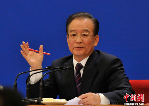 3月14日,国务院总理温家宝在北京人民大会堂与中外记者见面,并回答记者提问。中新网记者 杨磊摄