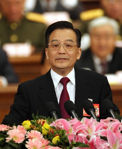 3月5日,第十届全国人民代表大会第四次会议在北京人民大会堂开幕。国务院总理温家宝向大会作政府工作报告。 新华社记者摄