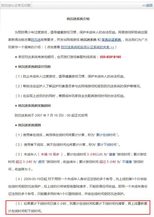 网易公布的游戏防沉迷常见问题说明。图片来源:截图