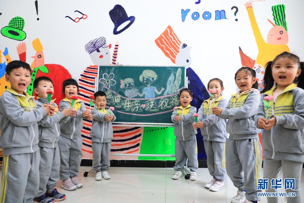 5月8日,在江苏省连云港市赣榆区御水湾金色摇篮幼儿园,小朋友们展示亲手为妈妈制作的手工康乃馨花束作品。母亲节来临之际,孩子们通过各种各样的方式,表达对母亲的感恩之情。 新华社发(徐诚 摄)