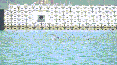 网友拍摄的视频里,一头鲸鱼在欢快捕食大口“干饭”、一大群海鸟在海面上盘旋。这条鲸鱼被网友们亲切称为“小布”。