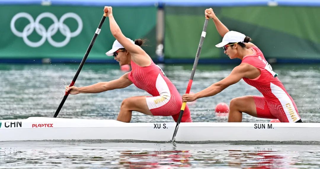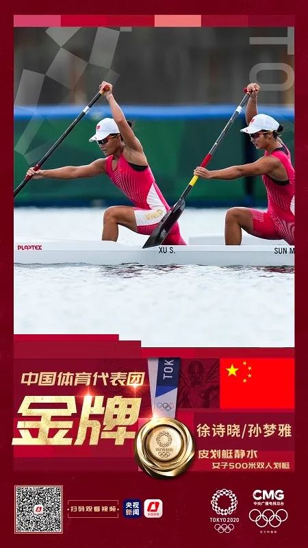 8月7日,东京奥运会女子500米双人划艇决赛中国组合徐诗晓/孙梦雅以1分55秒495夺得金牌