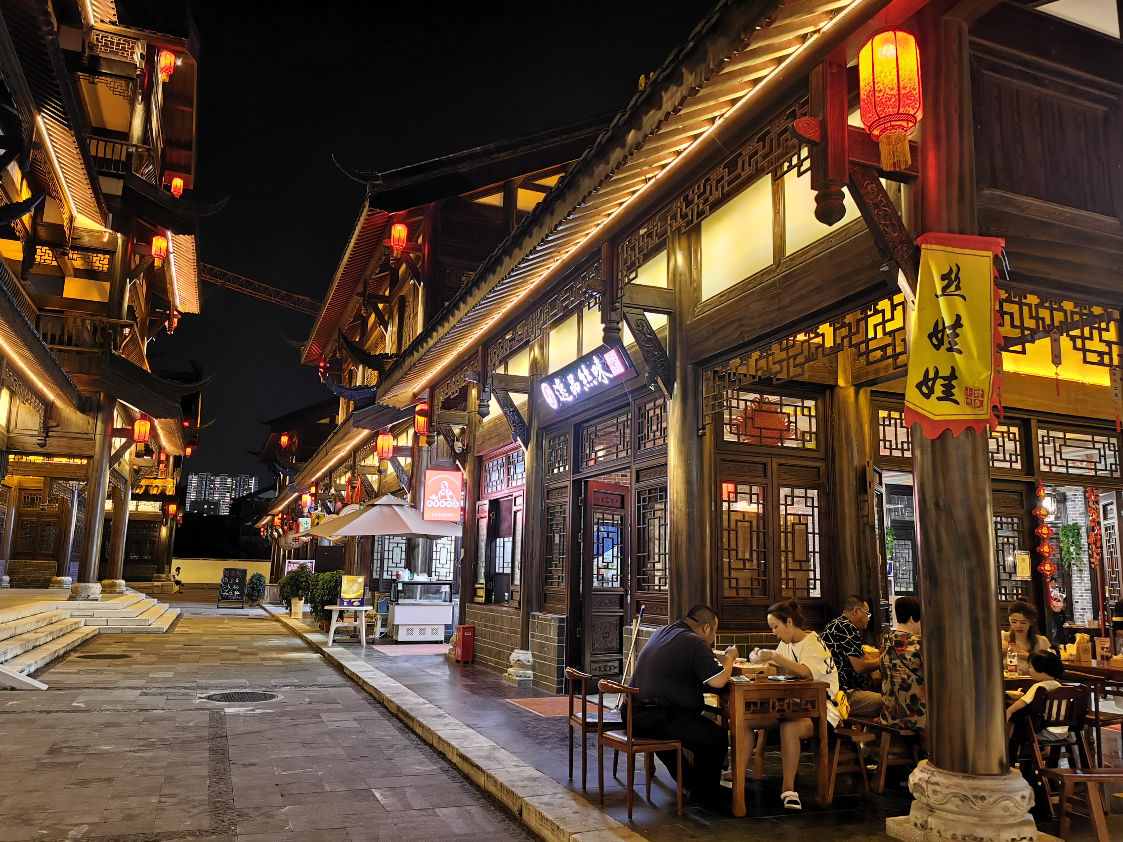 夜幕降临,华灯初上,织金古城步行街、新街坊熙熙攘攘,人们品味着各种特色美食,烟火味正浓;