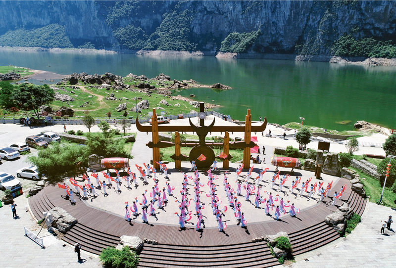 图为2021年6月6日,人们在化屋村码头广场表演舞蹈。 贵州省委宣传部供图 史开心/摄