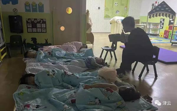 津云记录,本土疫情出现后,南开区一所幼儿园里孩子们的“勇敢者之夜”