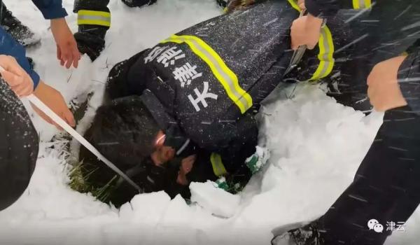津云记录,暴雪中“倒挂”井口救人的天津消防员