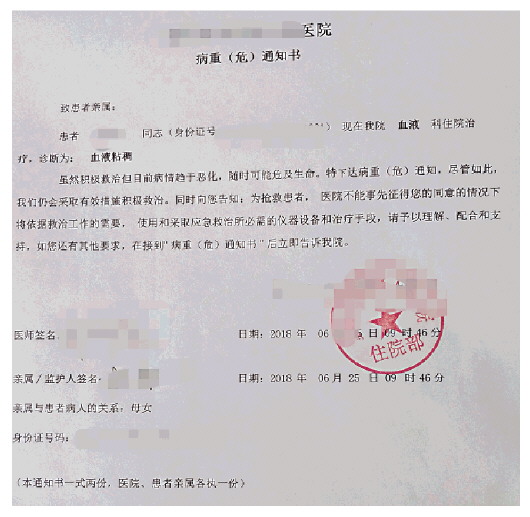 图为伪造病危通知书。 受访者供图
