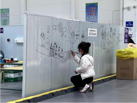 4月16日下午刚进入临港方舱时,看到方舱内井井有条,有充足的物资补给,还有“大白”们的亲切和热情,我的疑虑消失了。仔细看“大白”们身上的字,发现他(她)们来自浙江。感谢浙江“大白”们的无私奉献和手足情深!