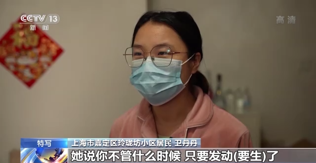 上海市嘉定区玲珑坊小区居民 卫丹丹:之前潘主任也跟我讲过,她说你不管什么时候,只要发动(要生)了,就马上联系我。我这个时候就让我老公给她拨了个微信语音过去,没想到她也接得很快,说马上就给我们安排120(救护车)过来。生的是男孩子,生出来是7斤7两。