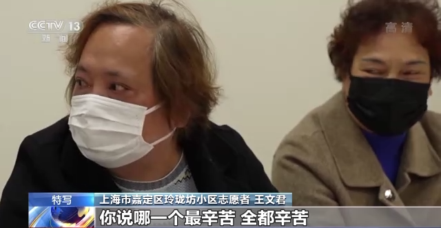 上海市嘉定区玲珑坊小区志愿者 王文君:没菜也找她,没药也找她,煤气没有也找她。有的时候我们帮忙,他们也考虑到我们年纪大了,他们也很心疼我们,怕我们有什么事,所以要说辛苦,他们最辛苦。你说哪一个最辛苦,全都辛苦。