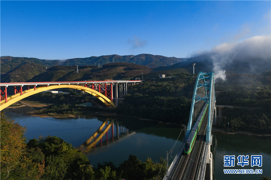 中老铁路自开通运营以来,在国内昆明至磨憨段的铁路线上,“复兴号”动车与“和谐号”货运列车奔忙,呈现出客货运输两旺的态势。据中国铁路昆明局集团有限公司消息,截至4月3日,国内段累计发送旅客203万人次;2022年一季度,中老铁路开行跨境货物列车371列,发送货物超过27万吨,货物品类达100多种。新华网发(李云生摄影报道)