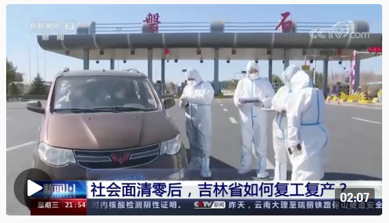 经过45天时间的抗疫,4月14日,吉林省宣布全省各州市均实现了疫情防控社会面清零的目标。如今,一周时间过去,稳步有序恢复生产生活秩序,吉林省各方面工作在怎样推进?共同关注:社会面清零后,吉林省如何复工复产?