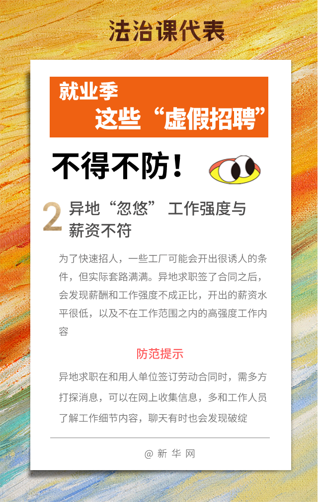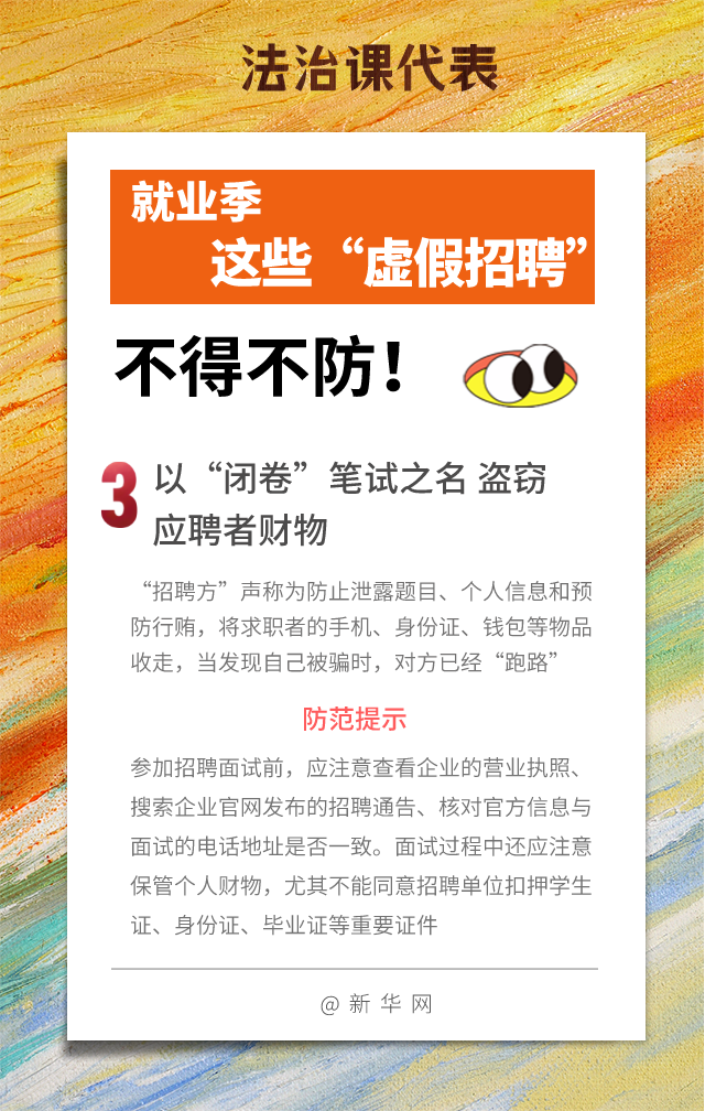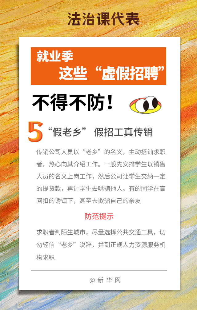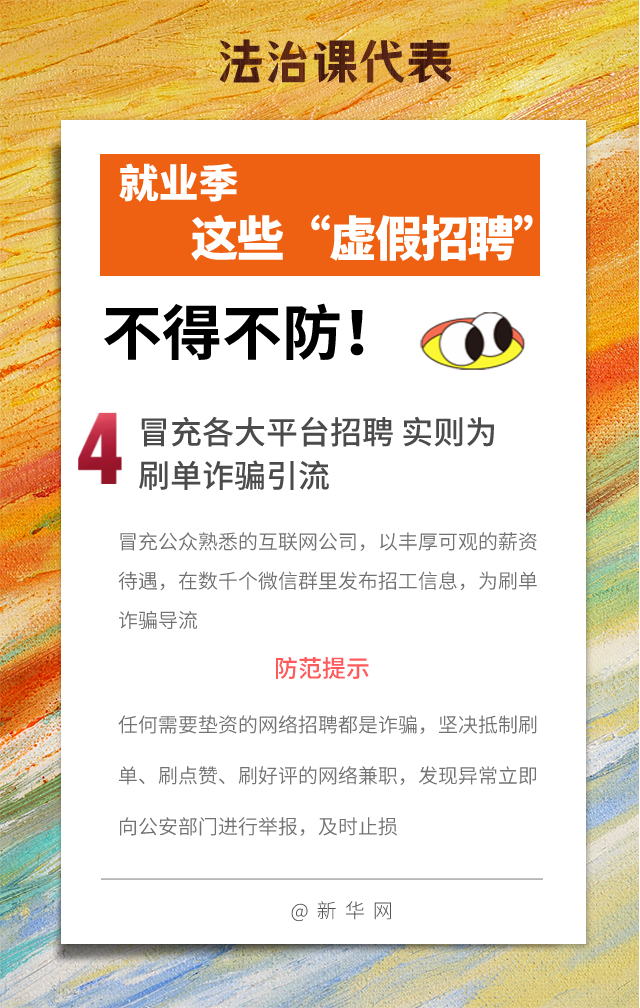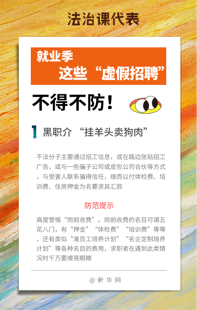 近日,人力资源和社会保障部会同国家市场监督管理总局发布通知,部署开展为期两个月的清理整顿人力资源市场秩序专项行动,通知明确要以打击虚假招聘等为重点。以下为几种常见的“虚假招聘”套路,大家一定要注意防范!