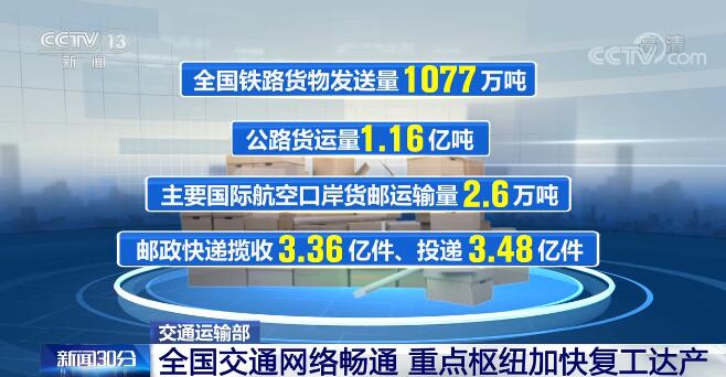 目前全国交通网络畅通 重点枢纽加快复工达产