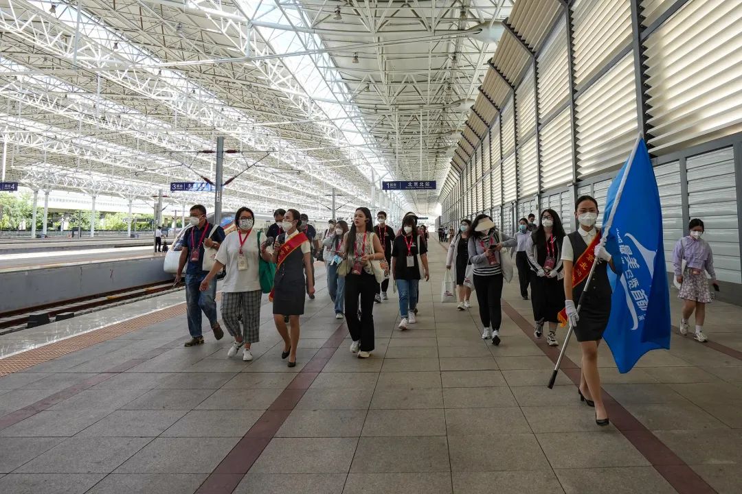 “发现团”从北京北站出发,登乘粉色涂装动车组——“怀密号”,开启赏心悦目的“发现之旅”。