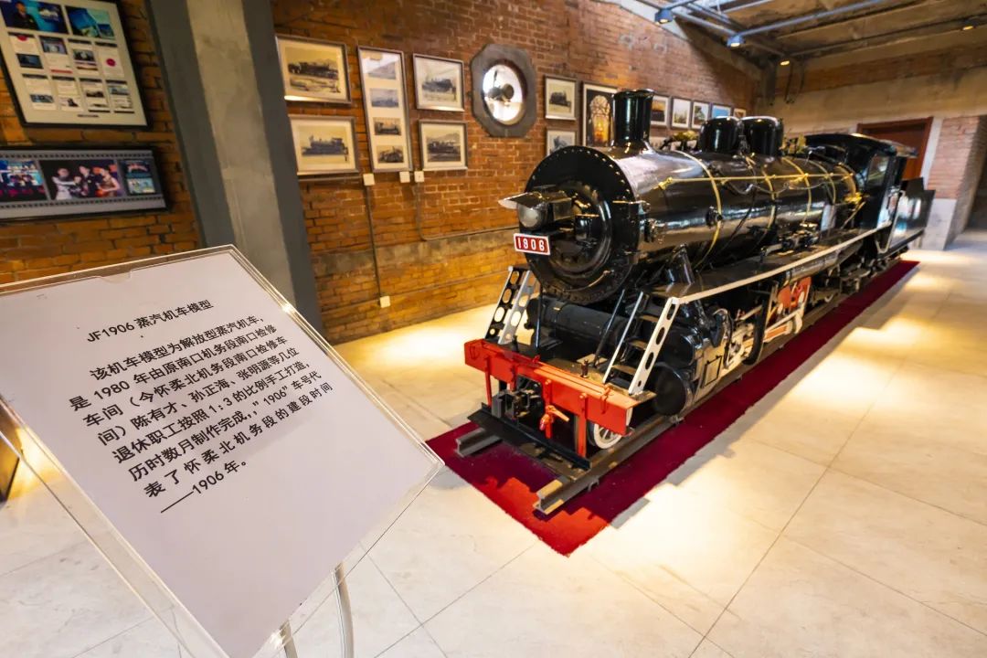 在该段的“时代动力”展室内,有分别铸造于1897年、1955年、1976年的三段钢轨,还有由该段退休职工按照1:3比例手工打造的JF1906蒸汽机车模型。