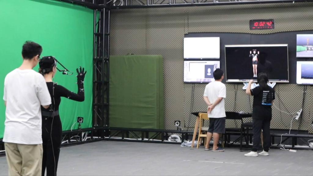 魔珐科技导演倪静在公司里负责虚拟人打造的全流程。她说打造虚拟人有两条通路,一条是商业化的,一条是应用方向的。