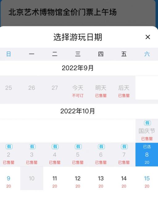 “早就想去北京艺术博物馆看看,据说是‘京西小故宫’。之前周末就特别难约,没承想十一假期更是‘一票难求’。”市民杨女士想去近日重新开放的北京艺术博物馆(万寿寺)一饱眼福,结果等她打开“北京艺术博物馆”公众号想预约时却发现,国庆假期7天上下午场的门票均显示“已售罄”。