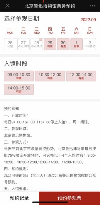 其实,市民不一定非得在假期选择去热门场馆,一些家门口的博物馆同样也能满足大家的文化需求,且目前票量充足。史家胡同博物馆10月1日、2日、4日至7日正常开放,10月3日(周一)例行闭馆,目前预约名额充足;北京鲁迅博物馆可提前3天预约(含当天),目前可预约的名额也很充足。