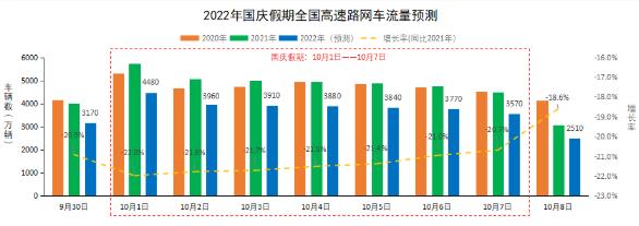 国庆假期出行需求依旧较为旺盛,部分长途出行向中短途自驾转移。综合考虑近期路网实际运行态势、公众出行意愿、疫情形势、天气情况、小客车免费通行、货车通行费减免等因素,预计假期出行需求依然较为旺盛,出行仍以旅游、探亲为主,但同比去年有所下降。同时,部分中长途公共交通方式出行可能向中短途自驾出行转移,省内短途出行占比较大,跨省长距离出行较往年减少,小客车自驾出行比例相对较高。