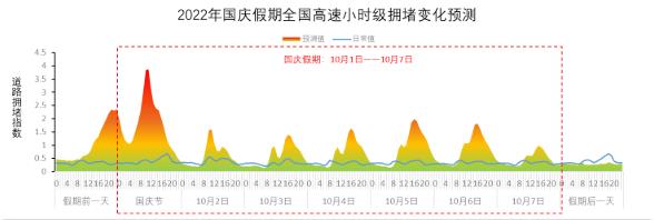 △2022年国庆假期高速公路网小时拥堵变化趋势