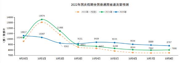 △2022年国庆假期全国普通公路平均断面交通量预测