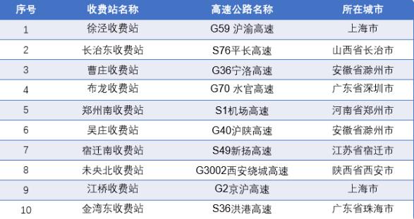 假期期间,预计出程、返程易发生拥堵缓行的收费站↓↓↓