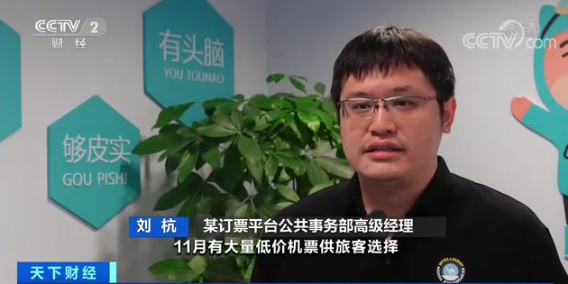 某订票平台公共事务部高级经理 刘杭:11月有大量低价机票供旅客选择,裸票价格低于200元。