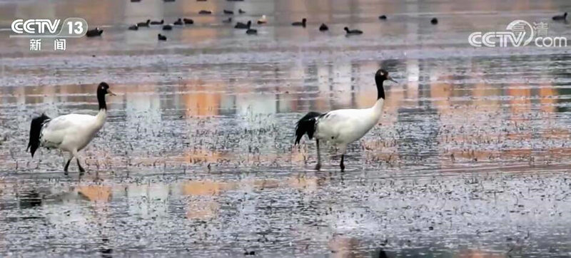 大批候鸟飞抵泸沽湖越冬 国家一级保护动物黑颈鹤现身