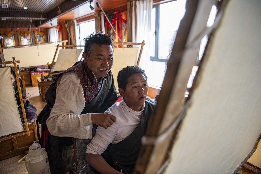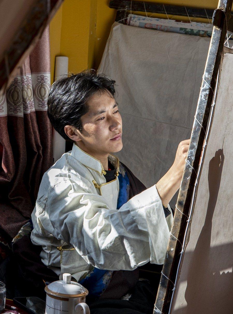 西藏日喀则:唐卡绘就五彩前程