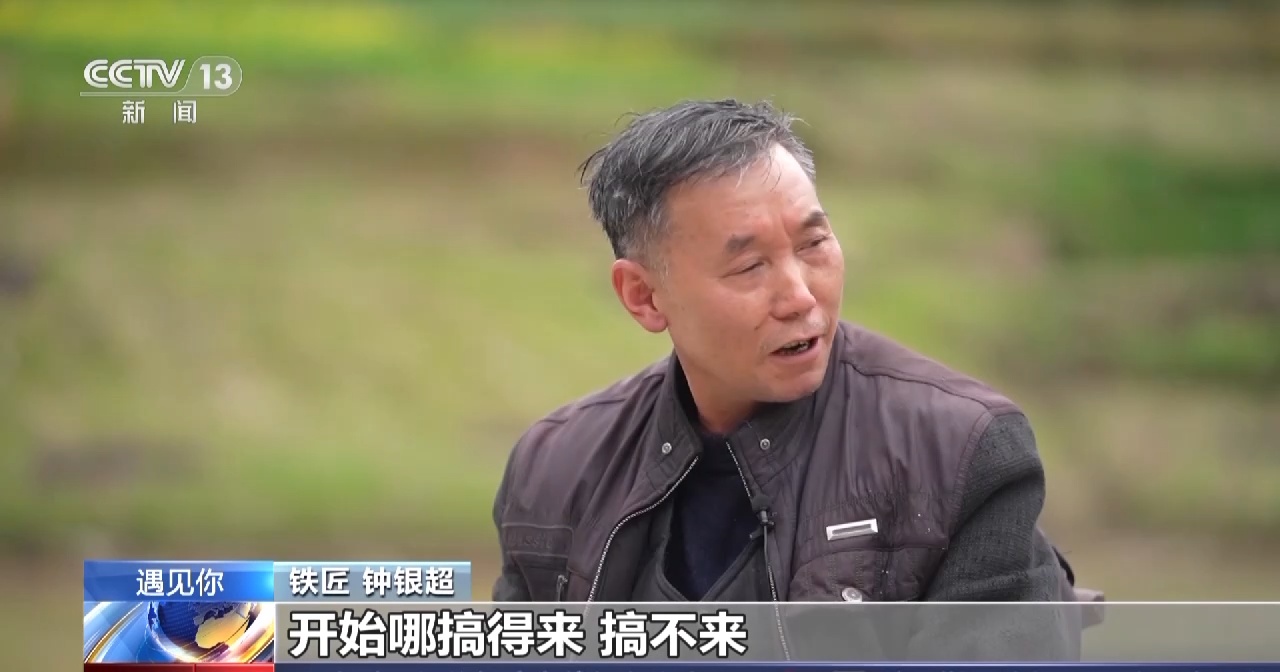 铁匠 钟银超:开始哪搞得来,搞不来。不知道东西怎么做。我们俩以前坐在院坝上,边打边看怎么才像。