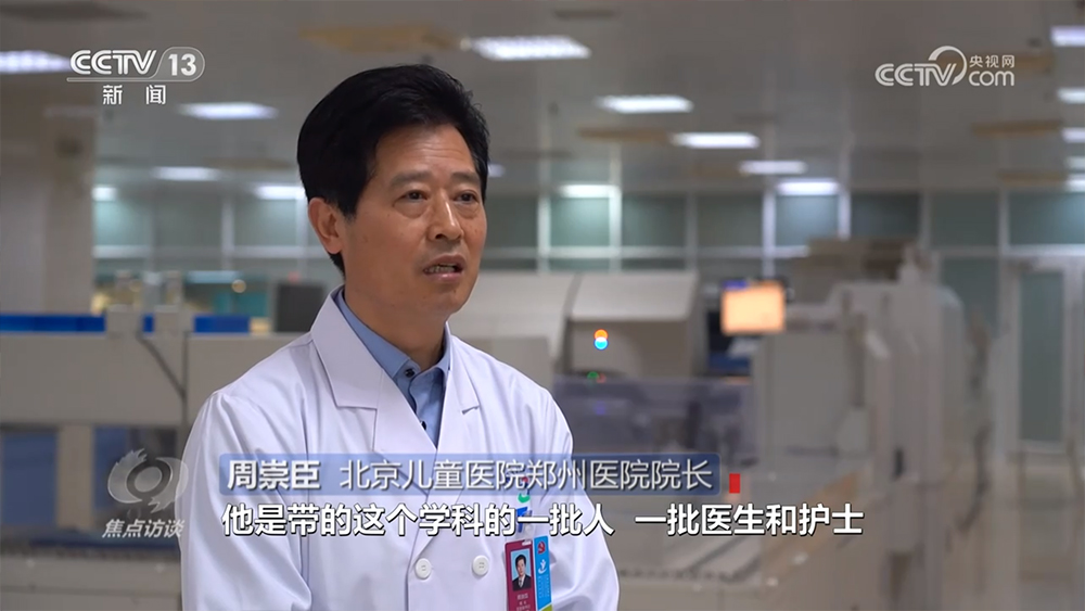 北京儿童医院郑州医院院长周崇臣:“一个学科两个主任,河南省儿童医院原来的学科主任偏重于科室的管理,北京儿童医院专家特聘主任,侧重于医、教、研的提升,这样就有了一加一大于二的效果。”