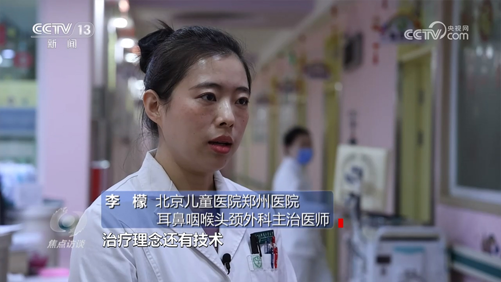 北京儿童医院郑州医院耳鼻咽喉头颈外科特聘主任段清川:“她的病程相对来说比较凶险,脓肿已经突破进入到脑子里,可能会产生一些不可挽回的永久的后遗症。疑难复杂病人会及时向北京进行连线,然后制定术前治疗方案。”