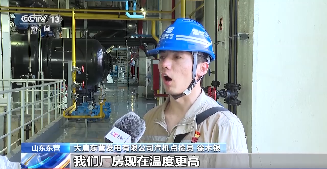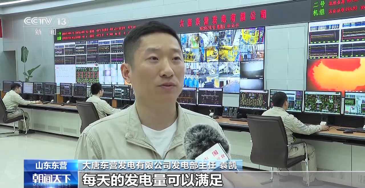 大唐东营发电有限公司发电部主任 袁凯:现在我们两台机组都是满出力运行,每天的发电量可以满足三个东营港经济开发区的用电需求。增加重要设备的巡查次数,做好旋转设备的温度监测,确保机组安全稳定运行,全力保障电力供应。