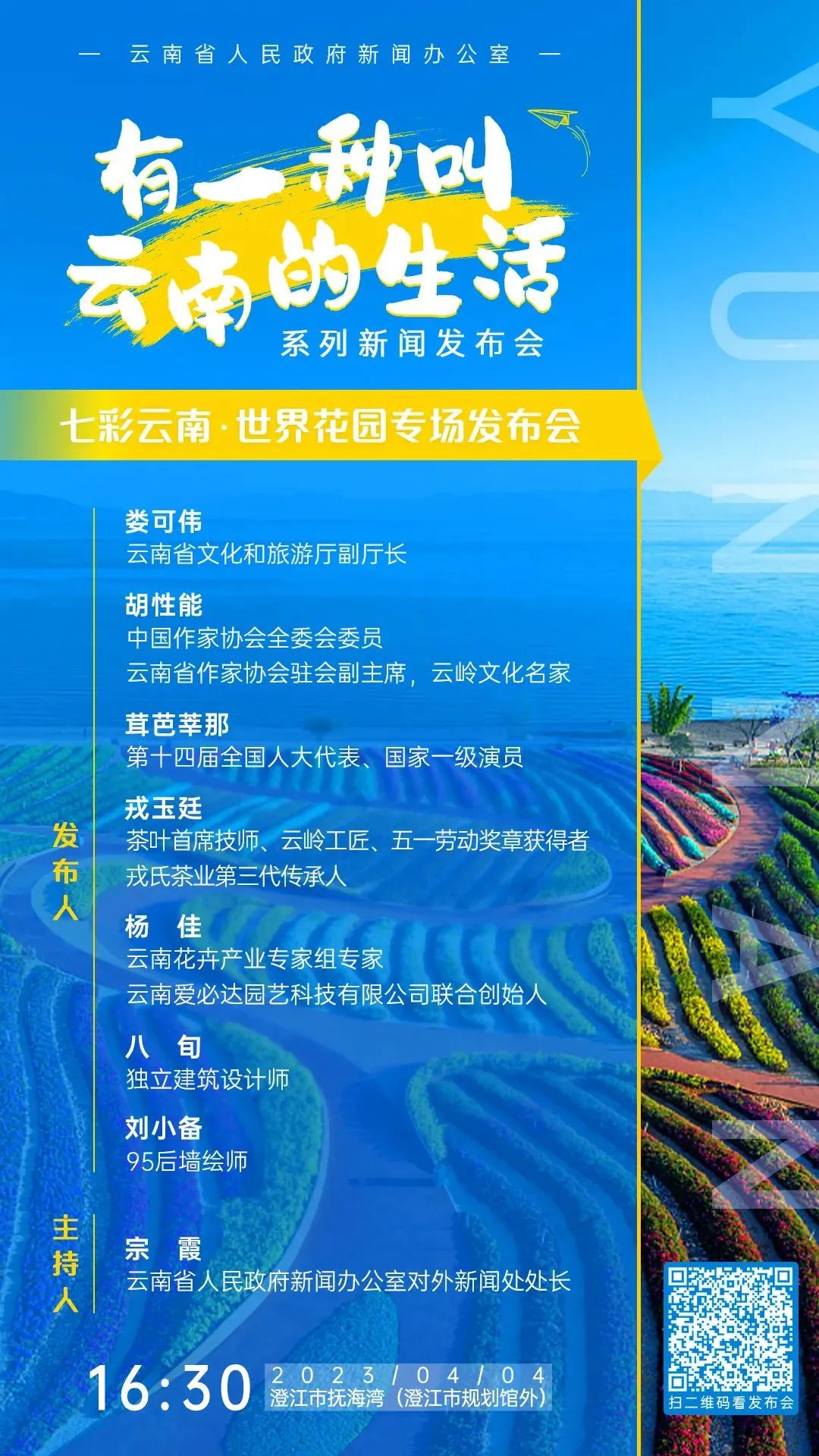 4月起,云南省人民政府新闻办公室召开“有一种叫云南的生活”系列新闻发布会,将发布会搬到了云南的山水之间,邀请云南各领域、各行业的嘉宾代表分享云南的山水、云南的旋律、云南的色彩,通过17场别开生面的新闻发布会,带广大网友“沉浸式”体验“有一种叫云南的生活”,进一步向全国乃至世界推介“七彩云南 世界花园”。