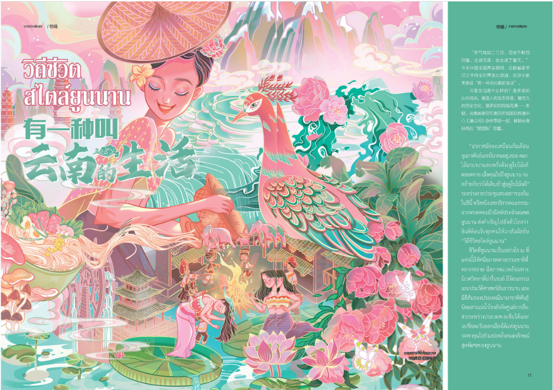 泰文《湄公河》杂志、缅文《吉祥》杂志、老挝文《占芭》杂志、柬文《高棉》杂志于4月刊精心制作“有一种叫云南的生活”的专题策划,围绕云南特色美食、多彩民俗体验、悠闲浪漫生活、非遗手工艺传承、云南大好河山等关键词,以及外国人在云南幸福生活的故事,讲述云南开放、包容、多元的环境和独特的生活方式。