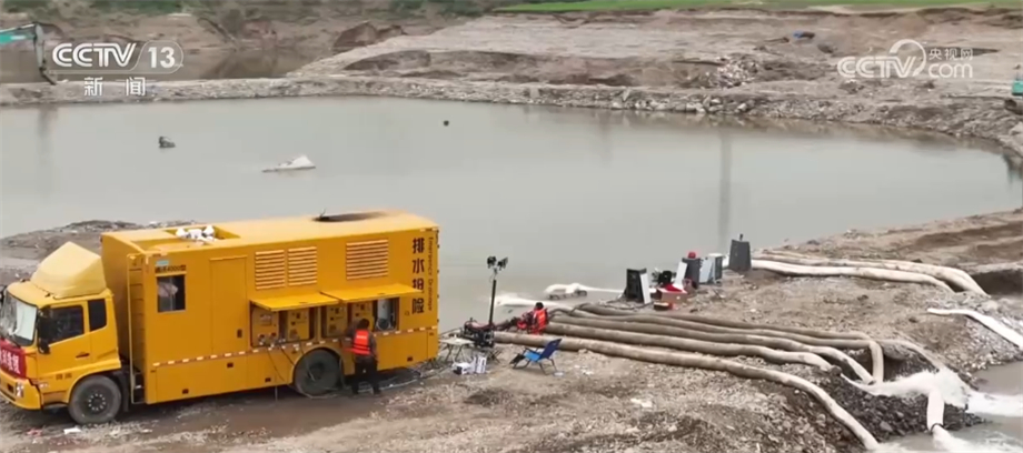 总台央视记者 张丛婧:这里是(天津)东淀蓄滞洪区,距离子牙河主泄区200米,可以看到,现场的工作人员正在装卸砂石料,修复管线上方的巡护通道,保障原油管道安全。同时,现场有冲锋舟、发电机、抽水泵等防汛物资,一旦发生险情,可以快速对管道进行加固。