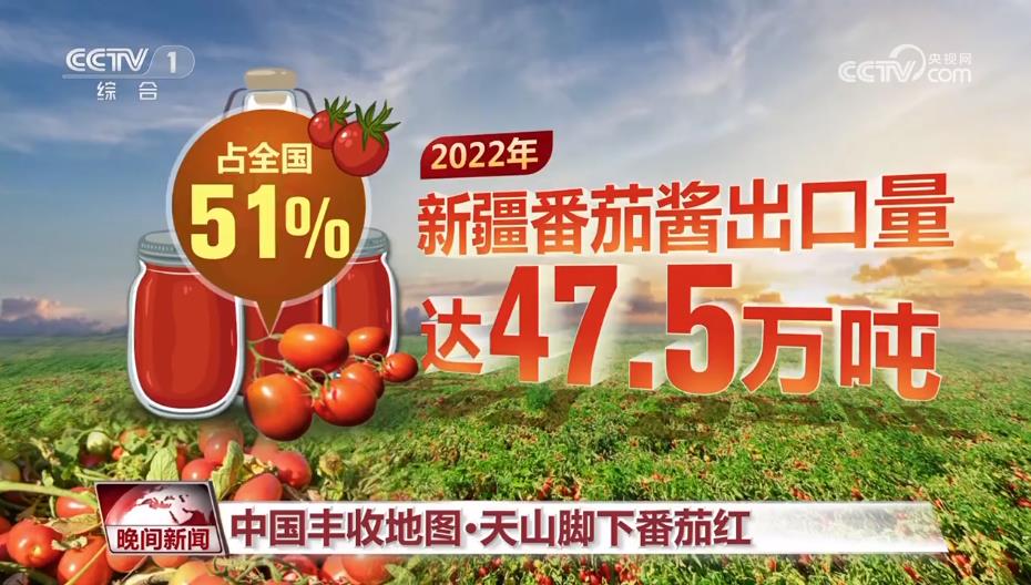 如今,加工番茄已成为新疆百姓创收致富的主导产业。 全球每4瓶番茄酱中,就有1瓶的原料来自新疆。乌鲁木齐海关数据显示,2022年新疆番茄酱出口量达47.5万吨,占全国的51%。