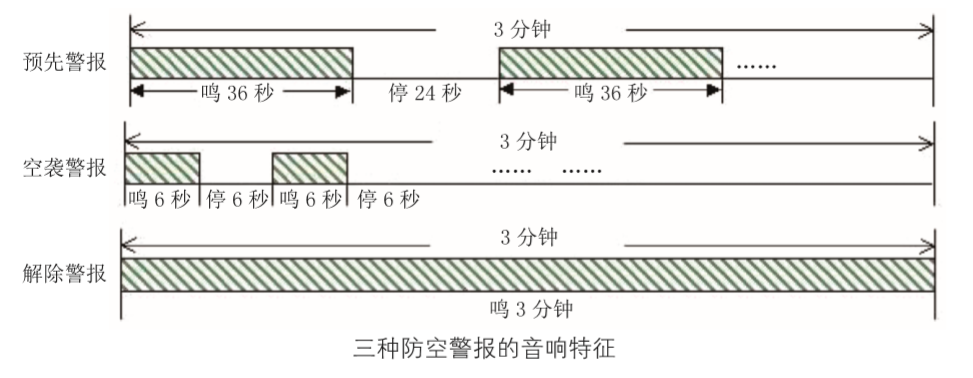 试鸣预先警报,鸣36秒、停24秒,反复3遍,时间3分钟。