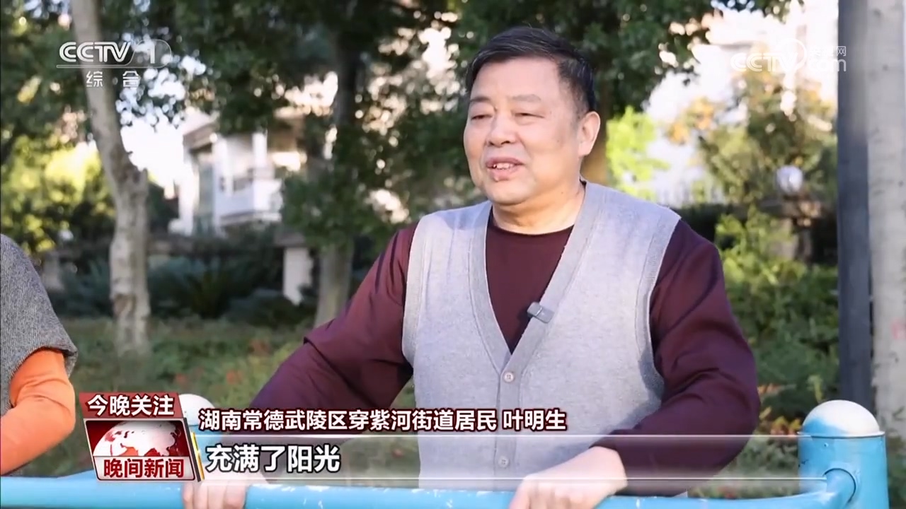 湖南常德武陵区穿紫河街道居民 叶明生:我们老年人现在的生活确实好过了,充满了阳光,社区到处都有了体育器材、有运动场所、有健身场所,现在我们玩得多开心啊。