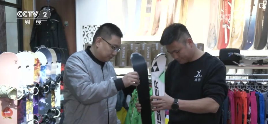 记者在河北崇礼多家雪具雪服的装备店看到,不少滑雪爱好者正在购买新装备。
