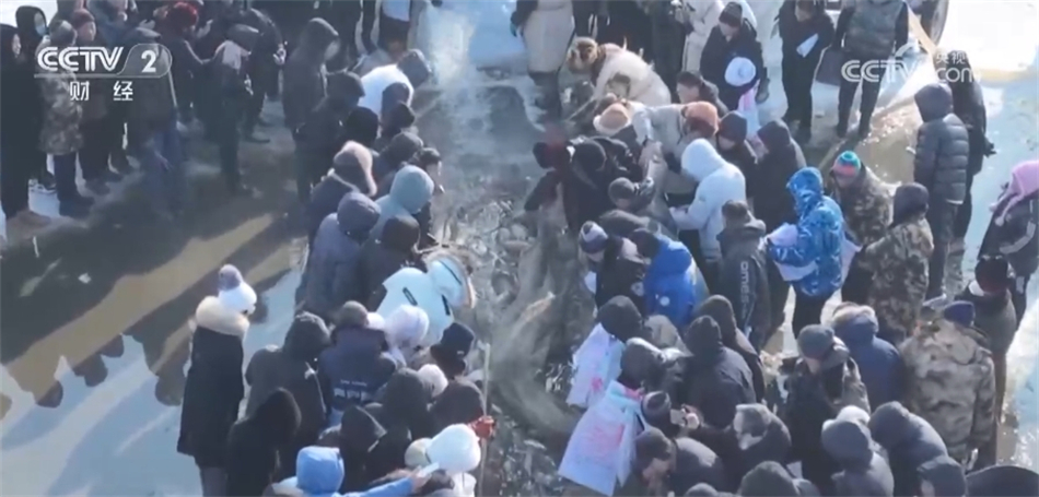 而在冷水鱼货源地之一的东北,大庆的冬捕活动进入高潮。2000多米的大网缓缓升起,这一网最大的鱼有30多斤,预计今年整个大庆冬捕期水产品产量可达400万斤,同时打开线上线下销售渠道,线上预售活鱼已经超过50万斤,同比增长10%。