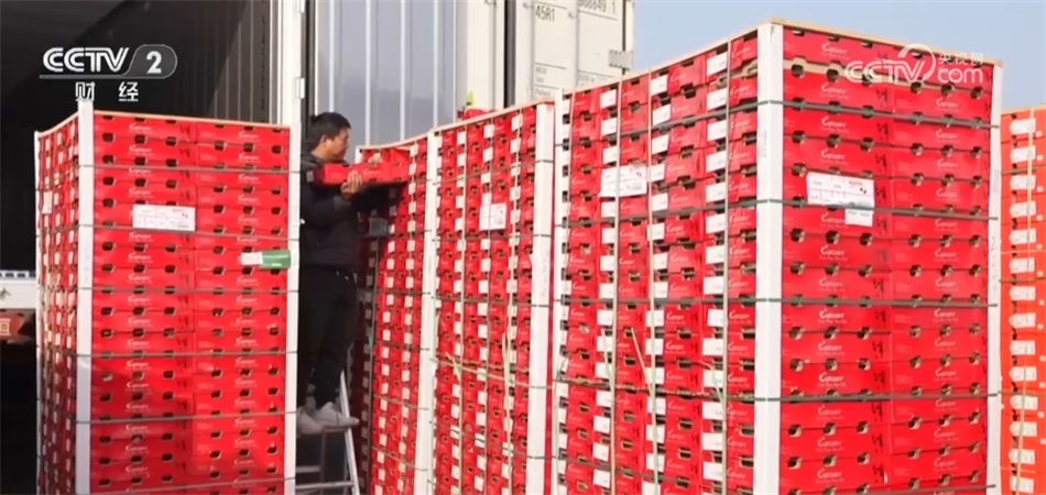 临近春节,除了车厘子这一主要交易品种,橘橙类、苹果类、提子类等销售量也比较大,优质的产品也吸引了来自全国各地的采购商前来选购。最近每天有2400吨左右的进口水果从这里发出,销往全国各地,最远到达新疆。