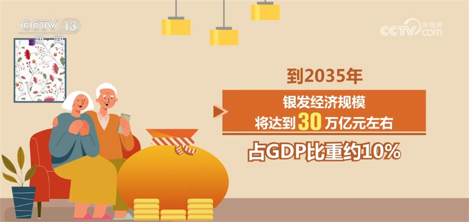 目前,我国银发经济规模大概在7万亿元左右,占GDP比重大约为6%左右。到2035年,银发经济规模将达到30万亿元左右,占GDP比重约10%。