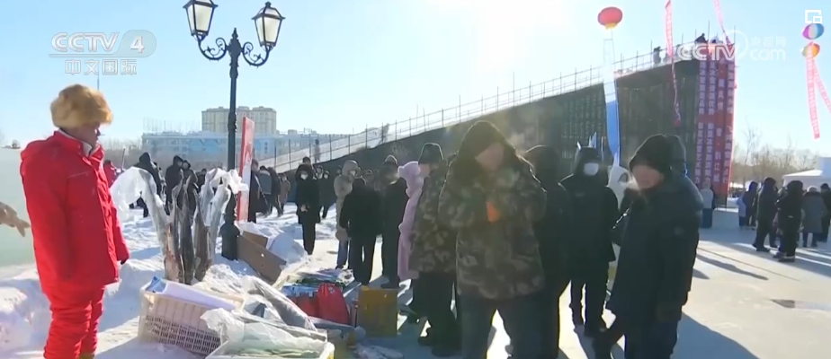 零下20多摄氏度的天气下,黑龙江同江的大集上摆满了冻鱼。商户们忙着招呼顾客,称量、打包一气呵成。