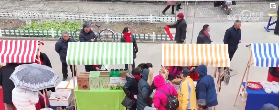 春节临近,各地年货大集纷纷上新。在江苏盐城市建湖县颜单镇漕桥村的大集上,摆满了各式各样的年货,现场处处洋溢着红红火火的“年味”。