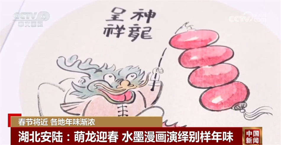 在湖北安陆市的河滨公园,100名水墨漫画创作者紧扣龙年主题,结合龙年元素发挥想象力,现场创作了近千幅“龙”味十足的水墨漫画,为游客献上别样的新春文化盛宴,也寄托了新的一年对自己、家人以及祖国的祝愿。