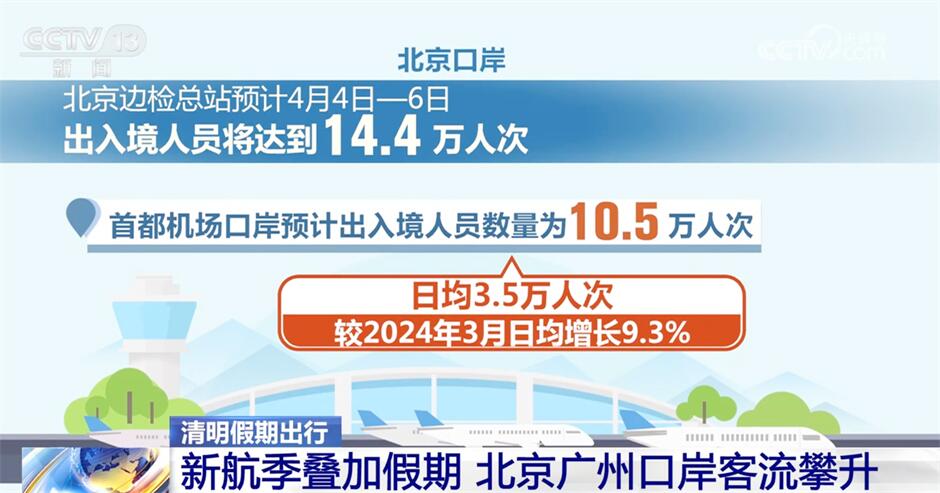 从3月31日零时起,全国各口岸正式执行夏航季航班计划,叠加清明假期,从4月1日开始,北京、广州各口岸客流开始出现大幅度攀升。